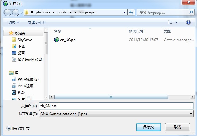 7,翻译完成之后,把翻译之后的.po 另存为:zh_CN.po,还是放在 languages 目录里;zh_CN.po 这个是固定的,是要和 wp-config.php 中的 WPLANG 保持一致,languages 目录是:wp-content/themes/theme name/languages,不能放到 wp-content/languages 目录中,.po 文件保存之后,会自动生成.mo 文件,其实语言文件起作用的是.mo 文件: