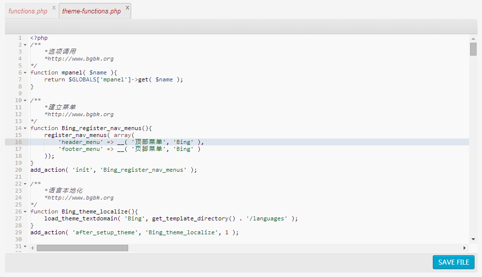 你可以使用这个编辑器编辑任何文件,下边是一些 WPide 的功能: