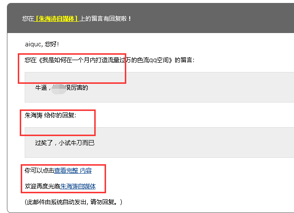 评论回复邮件效果如如下