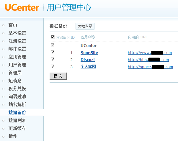 備份用户數據,到 UCenter 後台,點擊 「數據備份」,在此備份 UCenter 的數據。