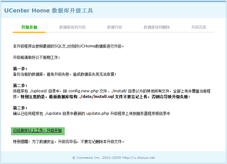 説明:升級之前請注意 UCenter 是否為 1.5.0 版本,UCenter 1.0.0 到 UCenter 1.5.0 圖文升級教程:http://faq.comsenz.com/viewnews-452