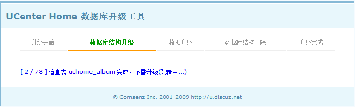 將 update 目錄中的 update.php 上傳到根目錄,並在瀏覽器運行。即如果你的 UCenter Home 訪問地址為 http://www.domain.com,則運行 http://www.domain.com/update.php,如下圖所示: