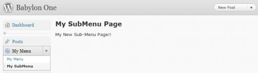 add_submenu_page('my_new_menu', __('My SubMenu Page'), __('My SubMenu'), 'edit_themes', 'my_new_submenu', 'my_submenu_render');