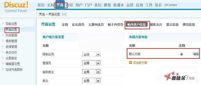 Discuz X3 後版本帖內使用者資訊美化功能很簡單,直接在後臺可以完全設定,但是經常會有客戶操作對齊的時候出錯,那麼我們就把程式碼貼出來說明下,方便以後大家減少出錯 進入後臺--介面--介面設定--貼內使用者資訊--編輯預設方案或是增加新方案