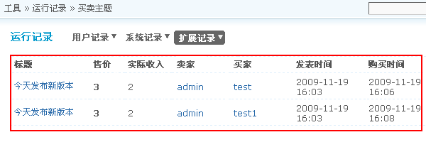 Discuz! 7.2 增加了保留買賣帖積分記錄的功能,即使帖子被刪除了,也可以從執行記錄中檢視購買記錄。