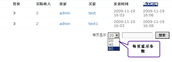 如果記錄比較多,還可以按每頁的數量顯示,也可以搜尋關鍵字查尋想要的記錄。