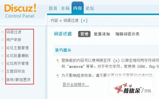2 、論壇管理員擁有全域性、內容和論壇的管理許可權