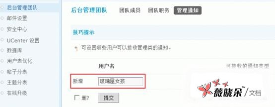 可設定哪些使用者可以接收管理類的通知,新增使用者名稱提交即可。